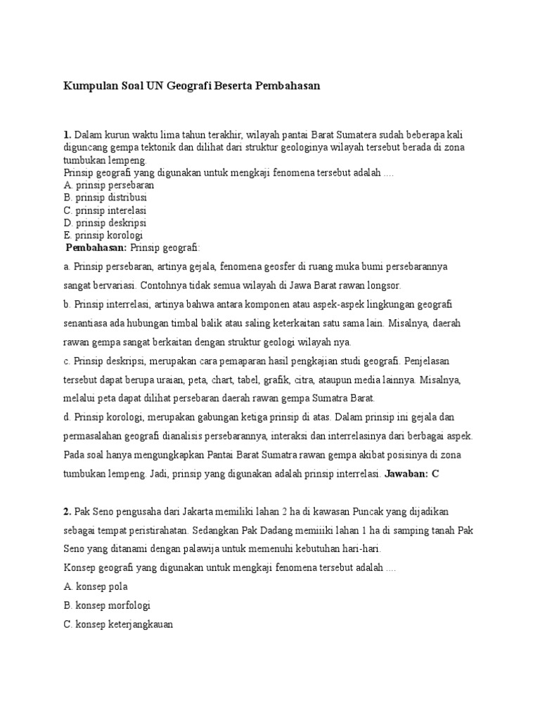 Contoh soal geografi tentang wilayah dan perwilayahan dan jawaban. Pembahasan soal ujian nasional geografi 2014. Link download soal sudah kami sertakan pada akhir artikel jika ada yang membutuhkan soal ips geografi sma di atas. Jangan lupa buka soal ips geografi lain yang ada di blog kami.